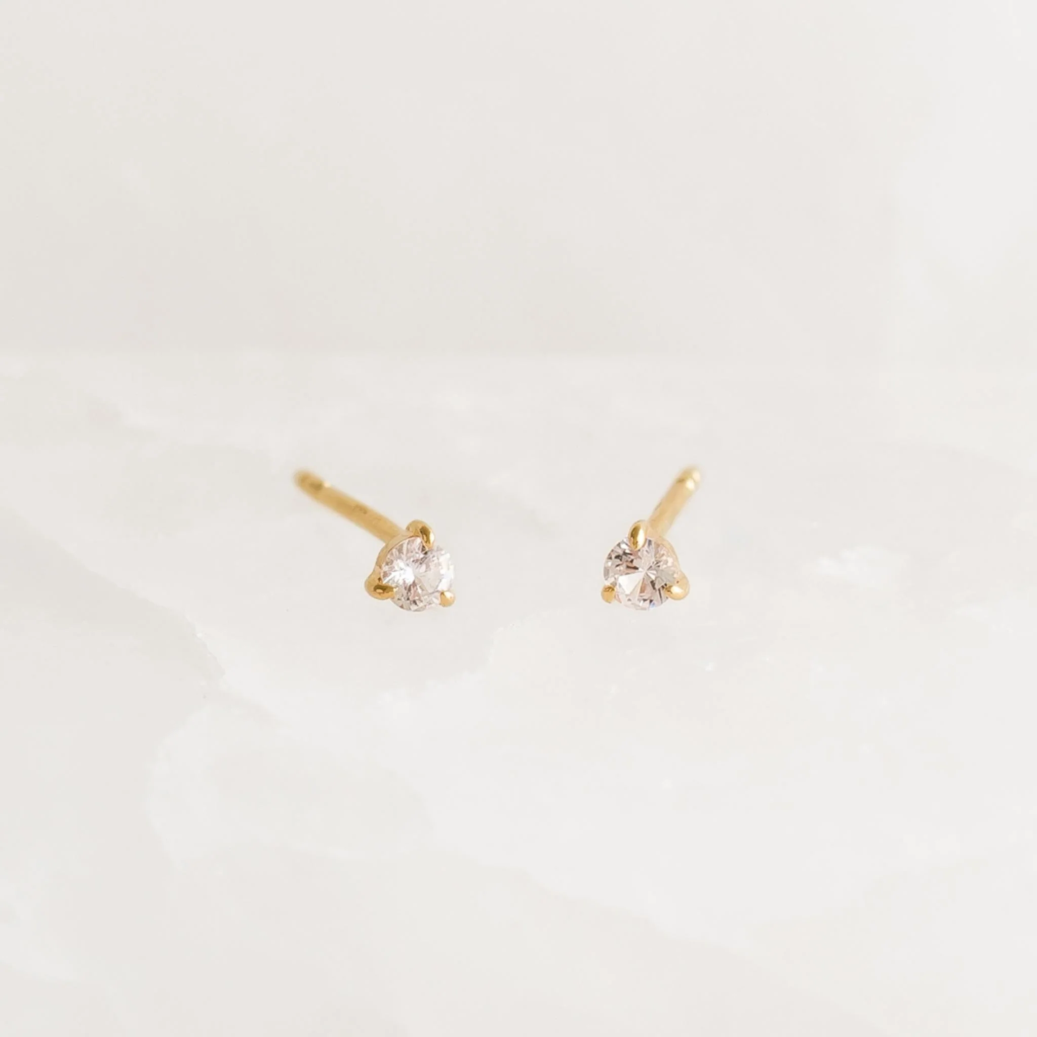 April Birthstone Stud Earrings 14k Gold - White Sapphire