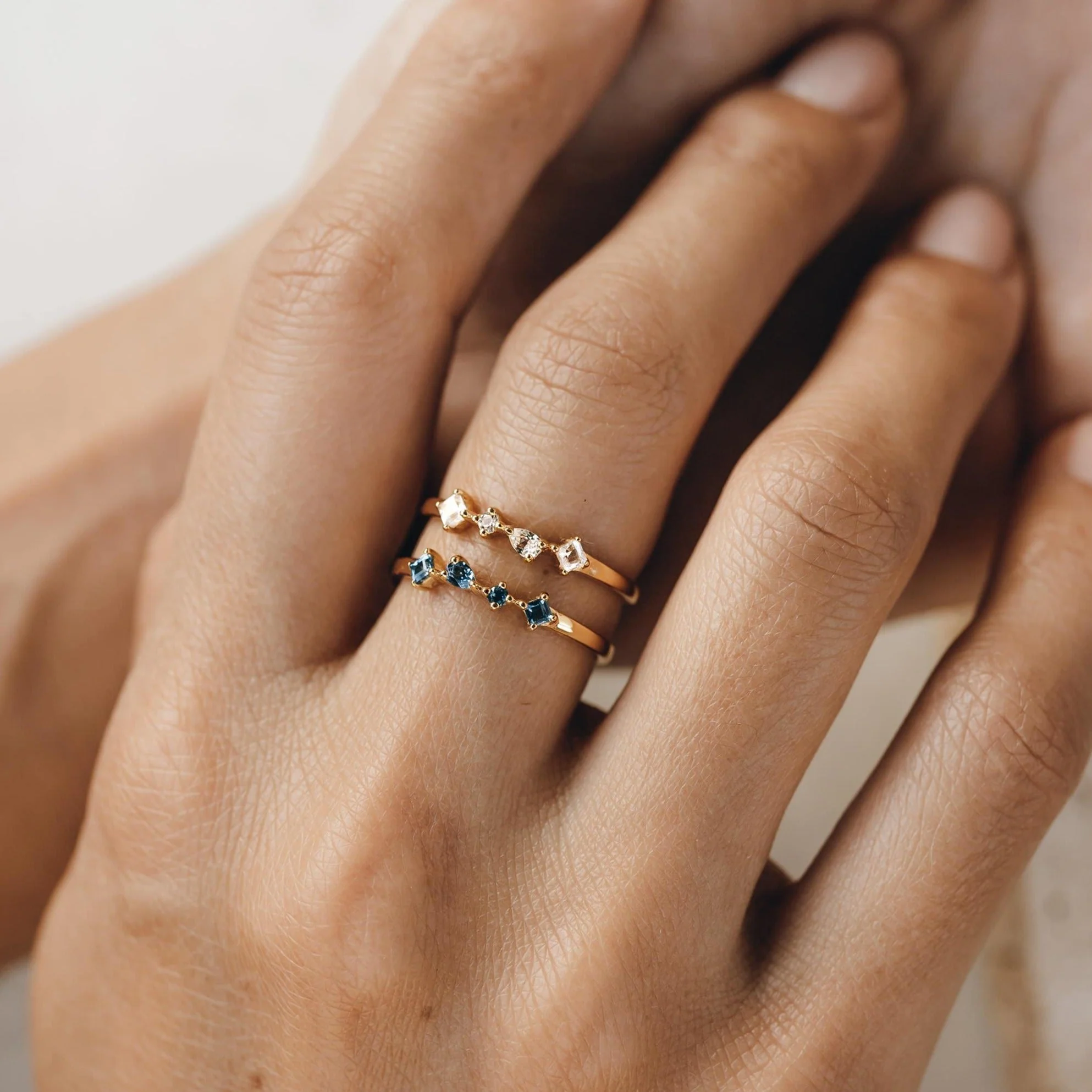 This white topaz ring features four gemstones delicately arranged on a gold band. Each gemstone has its own unique beauty, just like the person wearing it!
